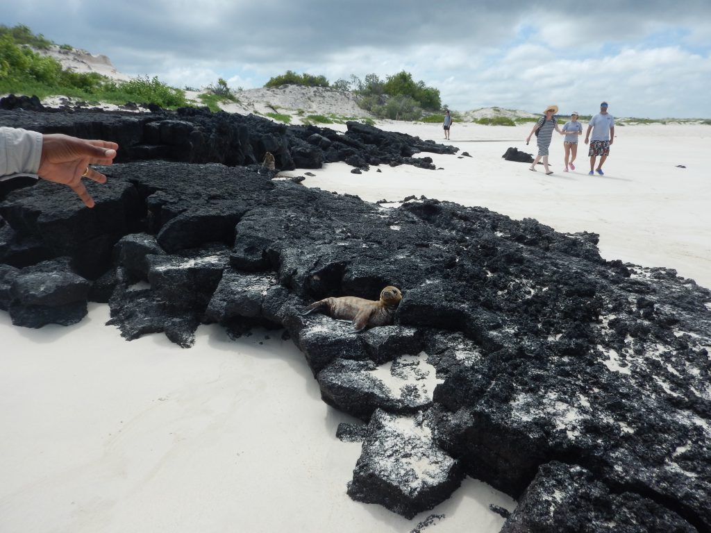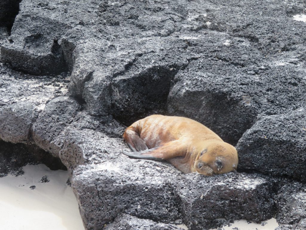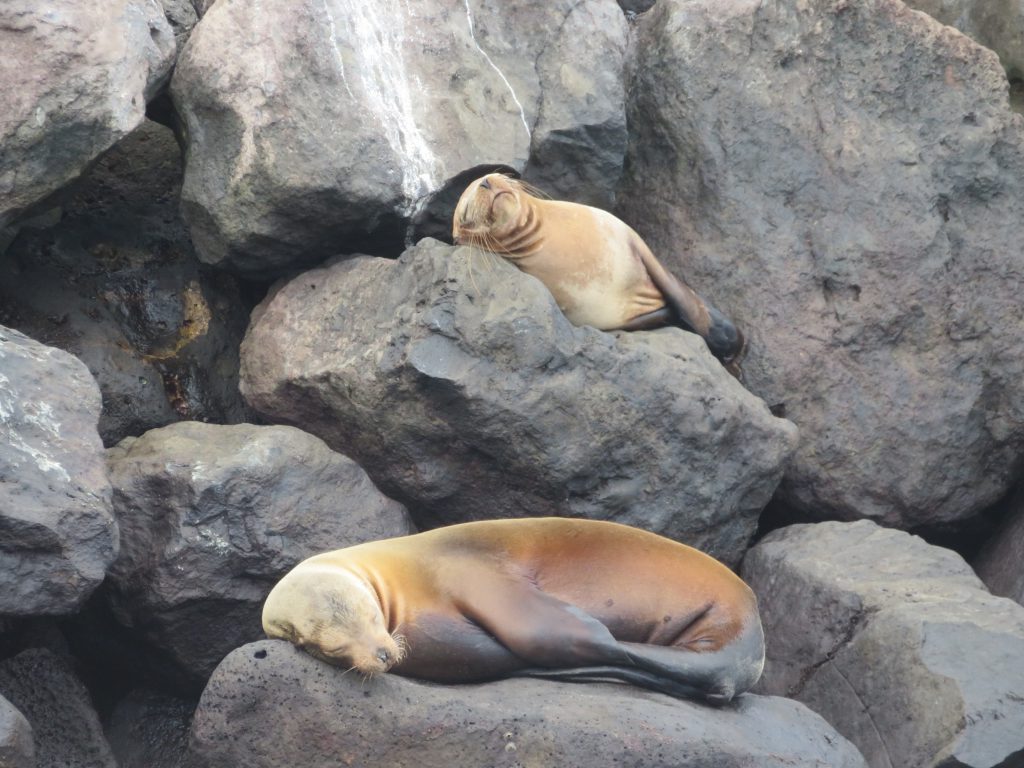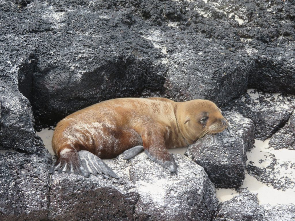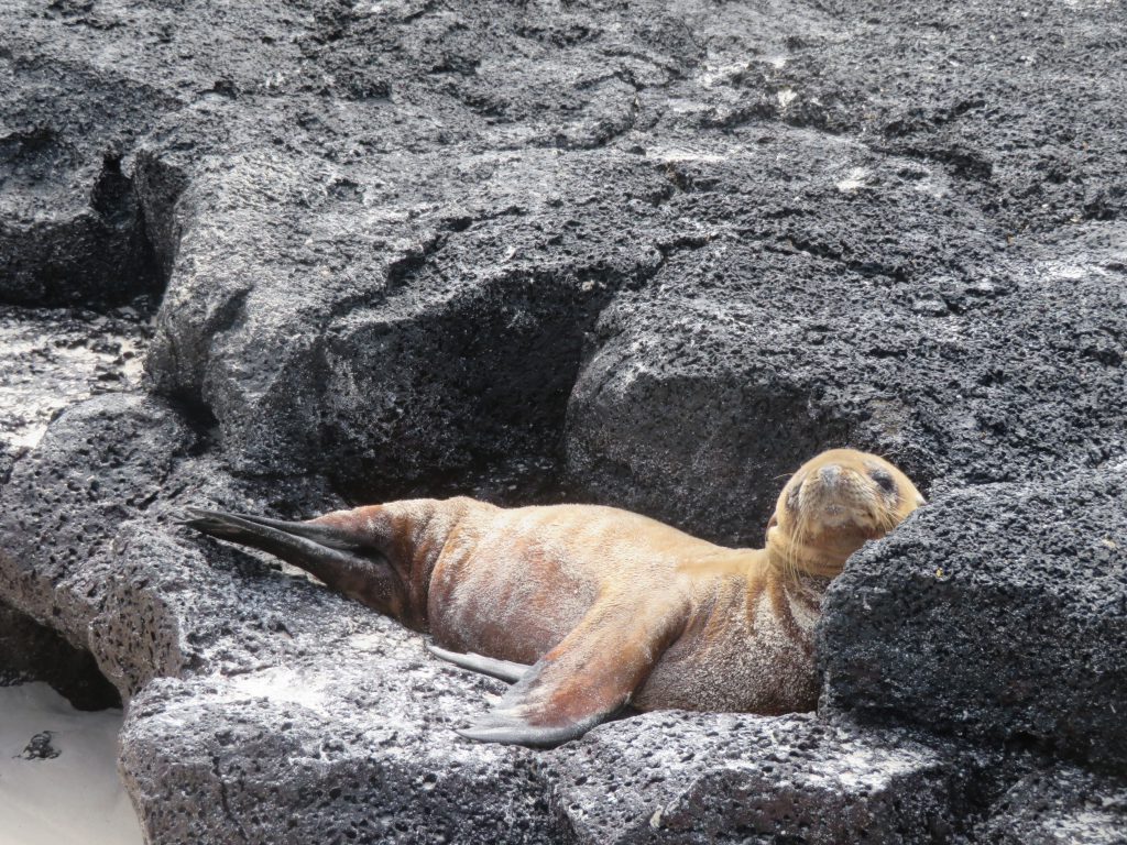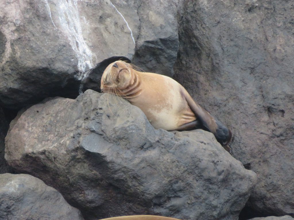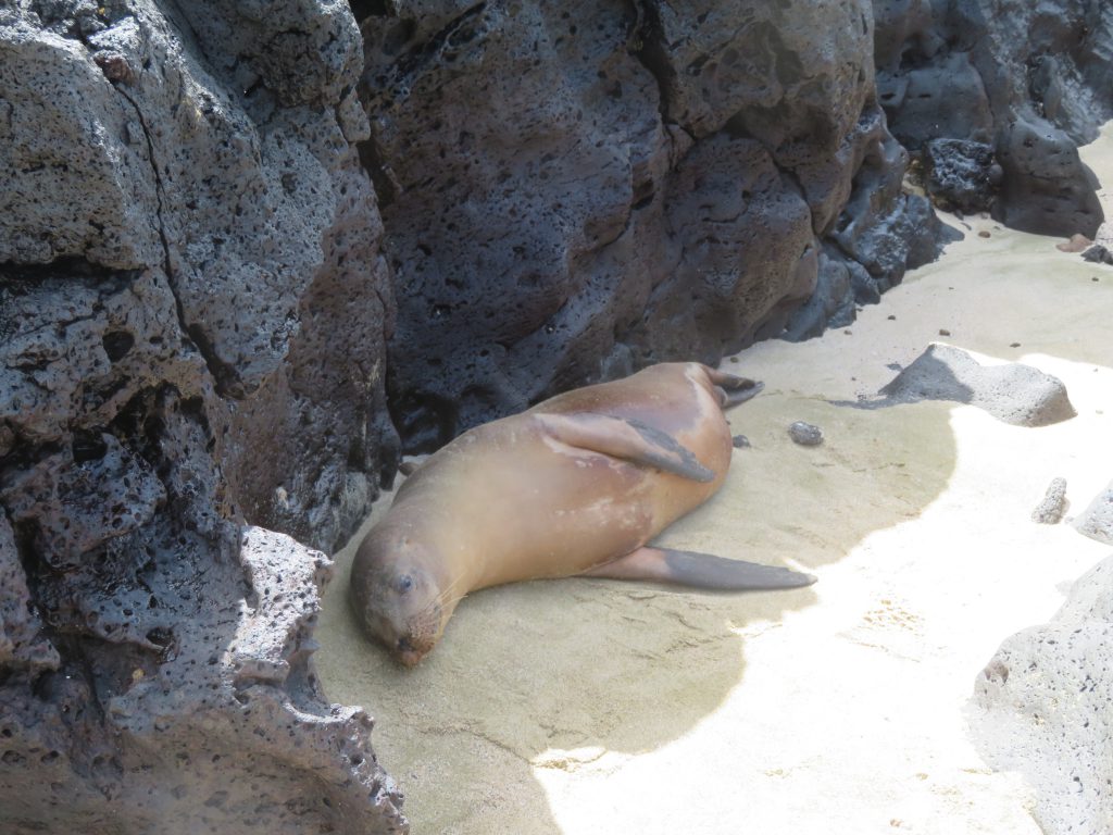 赤ちゃんアシカはずっとあの岩のくぼみにはまっているのかと思ったら、くぼみから出てきました。