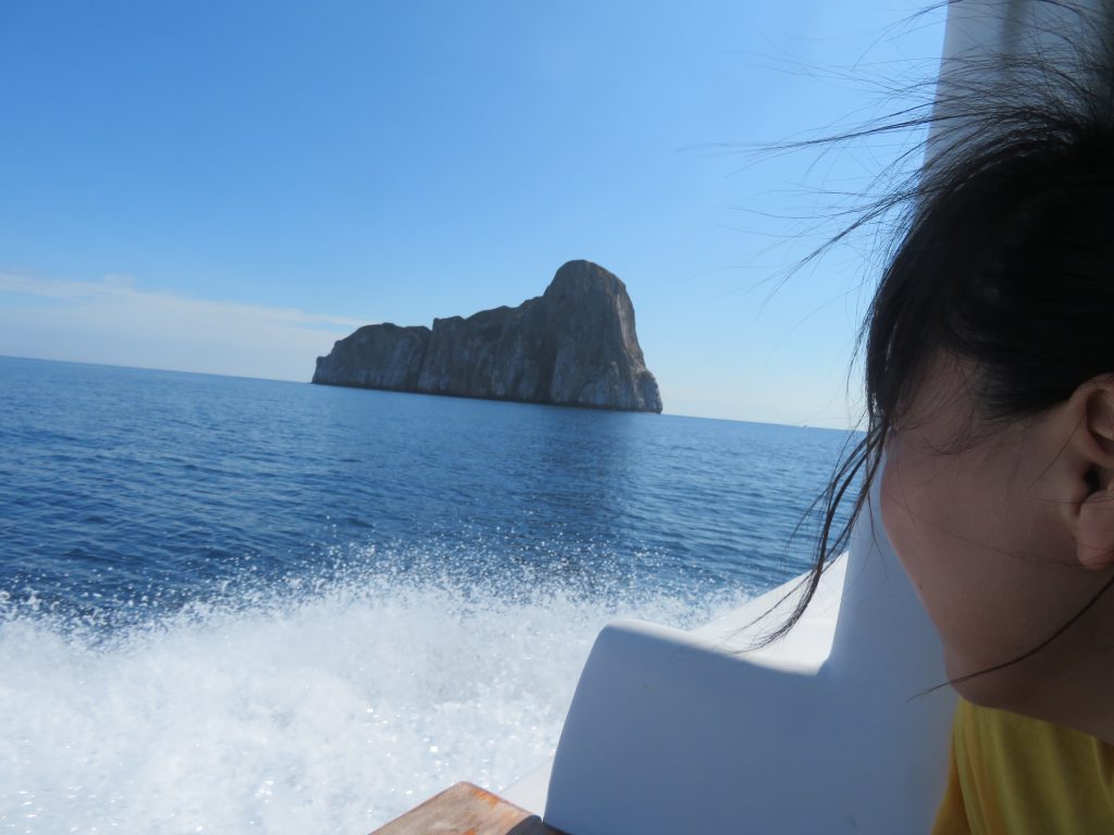 早く潜りたいけど、私たちの船はキッカーロックを横切って行きました。