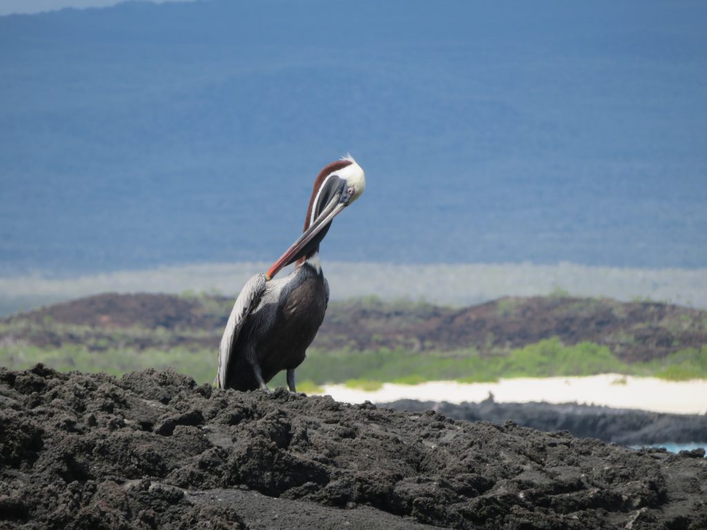 サンタクルス島で見たペリカンと柄が違う気がします。