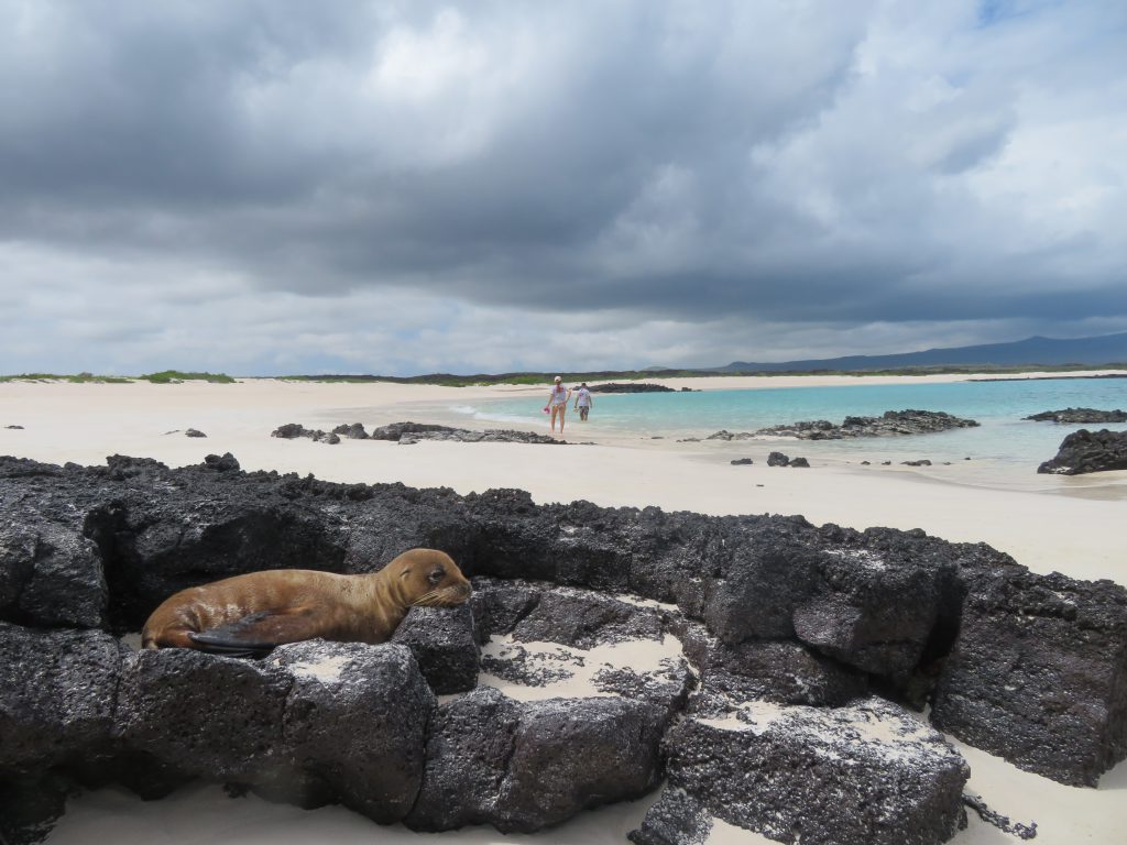 赤ちゃんアシカと美しいビーチと黒い雲…