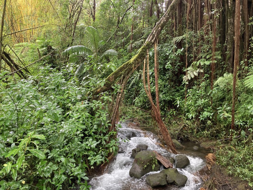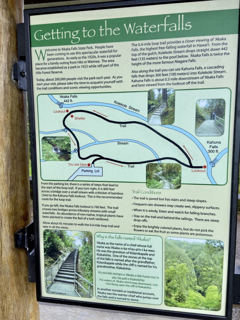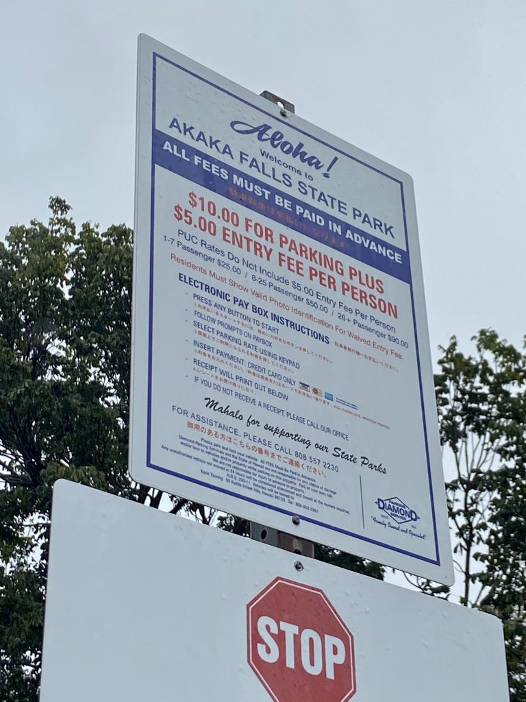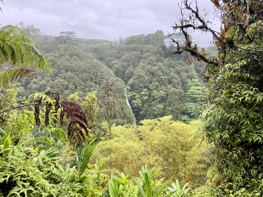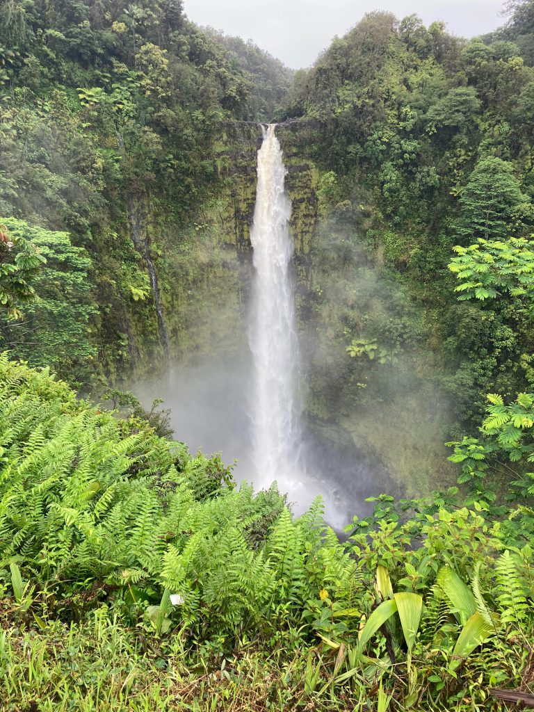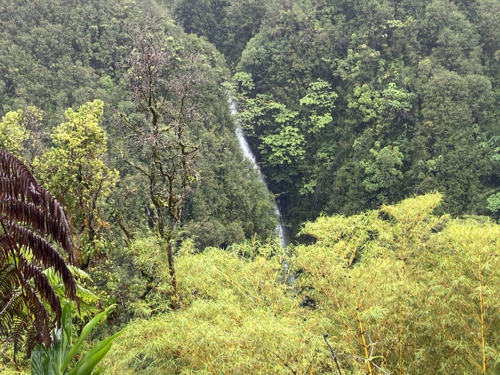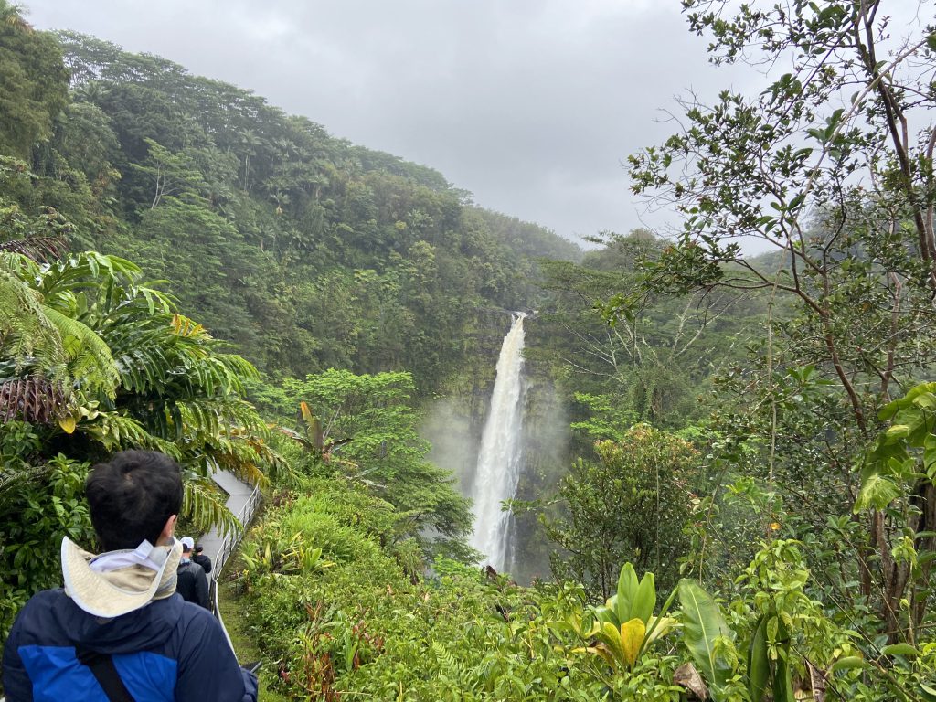 アカカ滝はさきほどのカフナ滝より高い、落差400ft = 約120mです!