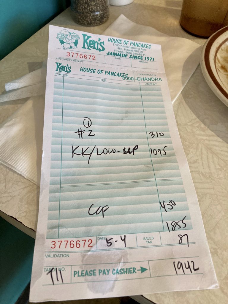 | 07:30 | ハワイ島で朝食 ケンズ ハウス オブ パンケーキ |