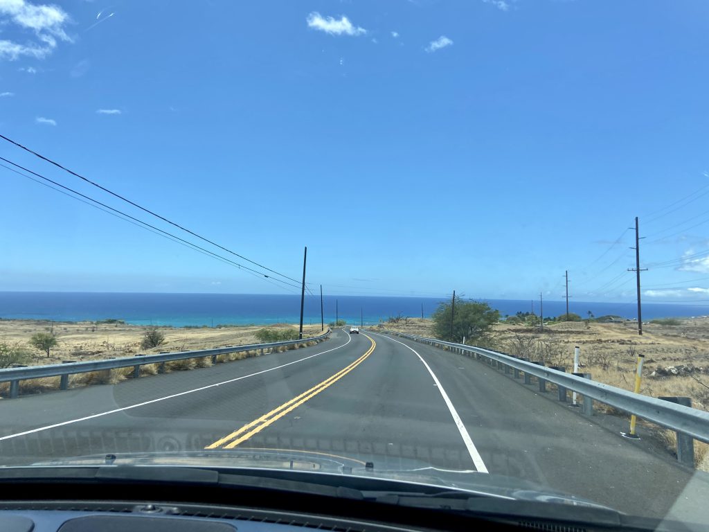 ワイメアでハンバーガーを食べて、ワイコロアに向かっているところです。