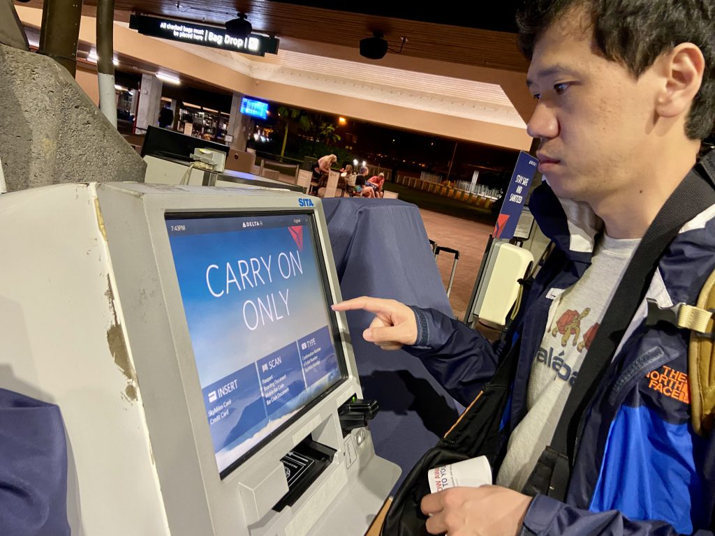 私たちは預入荷物が無いので、セルフチェックインをします。
