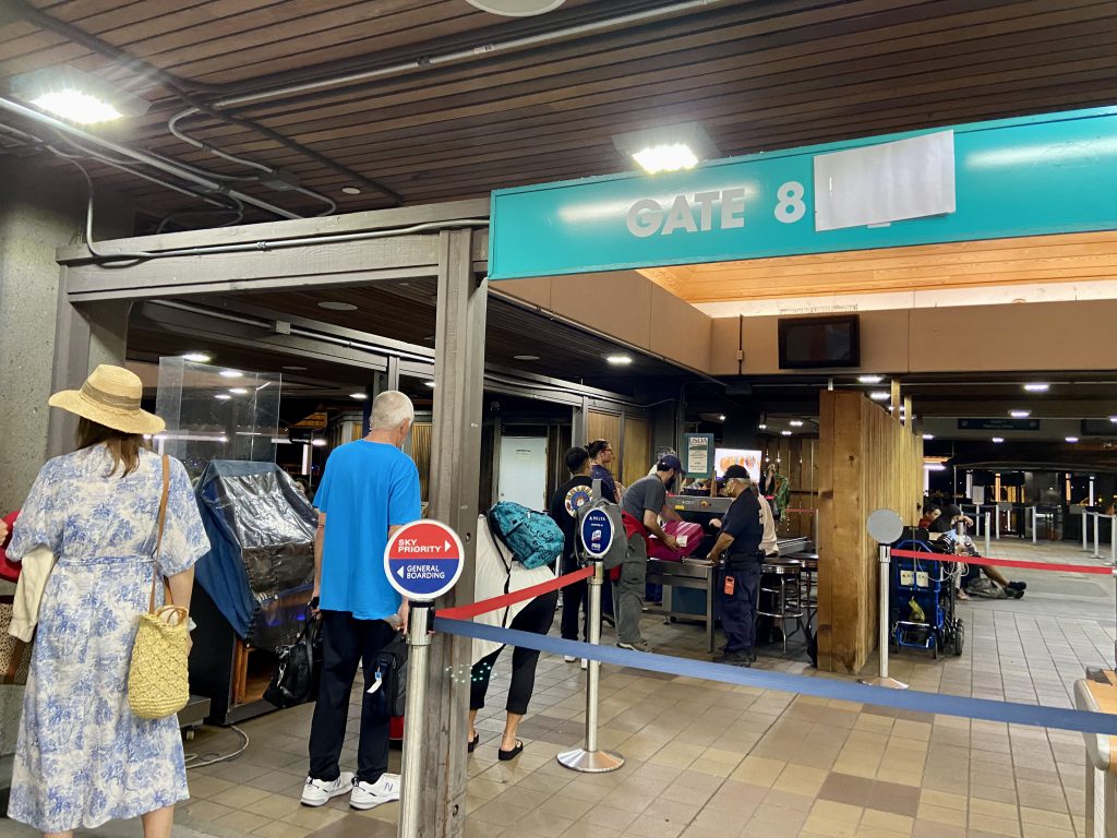 搭乗口はちょっとわかりにくいのですが、便名と行先の表示があります。