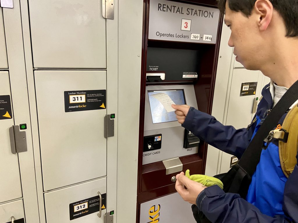 小さいサイズのロッカーにリュック(32ℓ)を2個無理やり押し込みました!