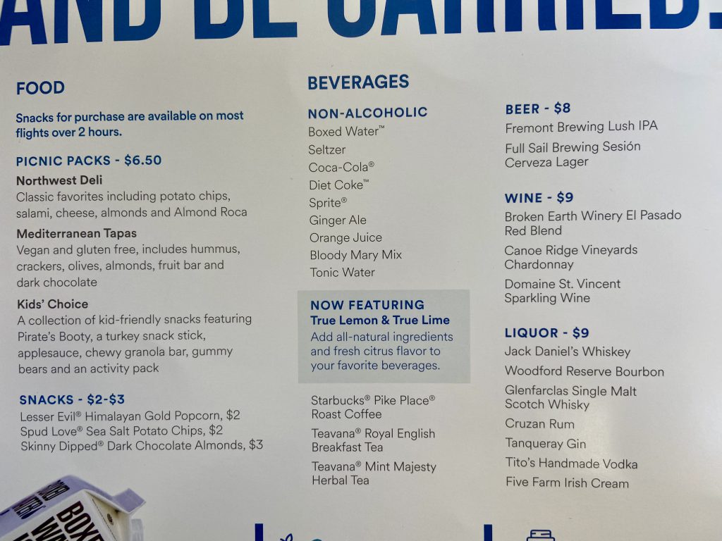 昨日シアトルまで乗ってきたのもアラスカ航空なので、飲み物の内容も当然同じです。