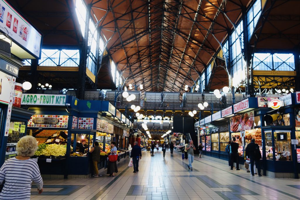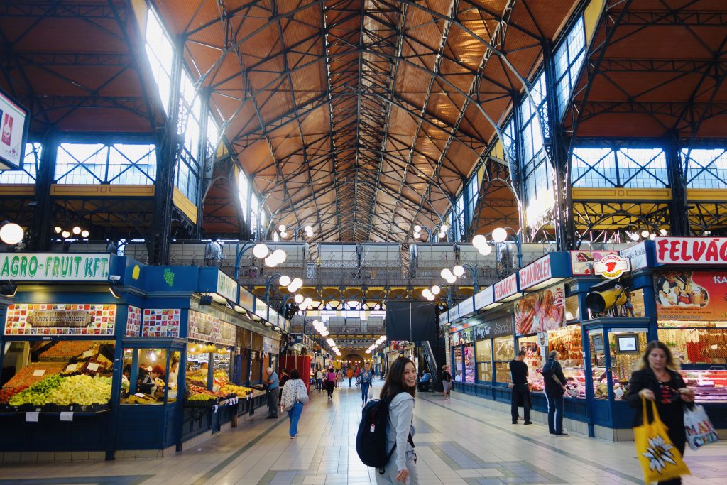 ブダペスト中央市場の目の前のトラム乗り場で降りて、市場の中に入りました。