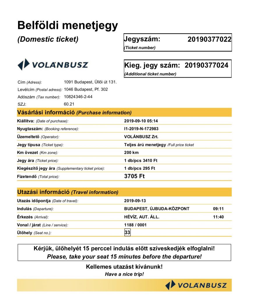 へーヴィーズ(Hévíz)という街のバスターミナルまで行くチケットになります。