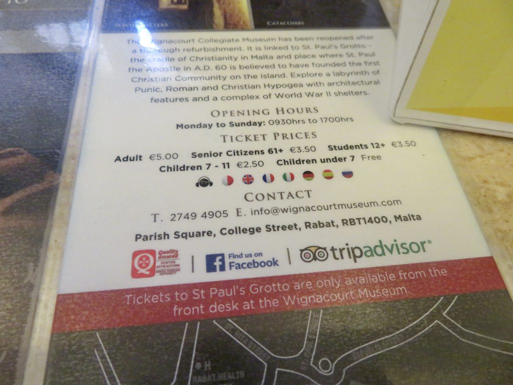 ホームページの情報によれば、新約聖書の著者の1人で、キリスト教の使徒である聖パウロがAD60年にローマに向かう途中で船が難破しマルタ島に上陸することになり、3ヵ月この洞窟に滞在していたそうです。