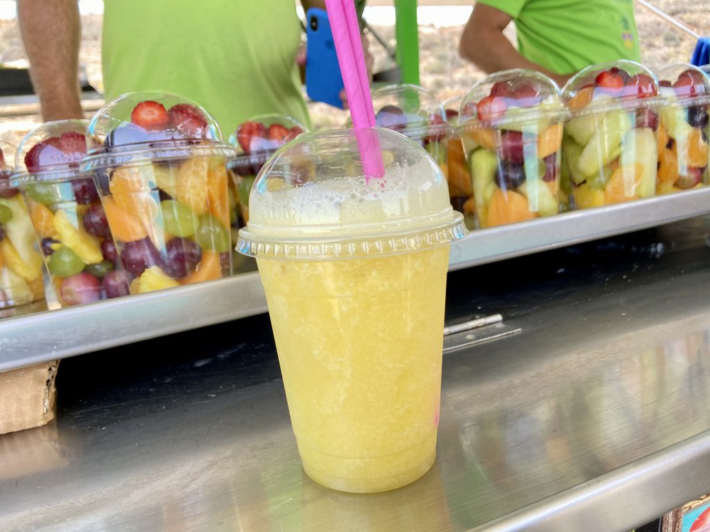 パイナップルの器に入ったジュースが良かったのですが、10€を超える高級飲み物だったので、ふつうのパイナップルジュースにしました。