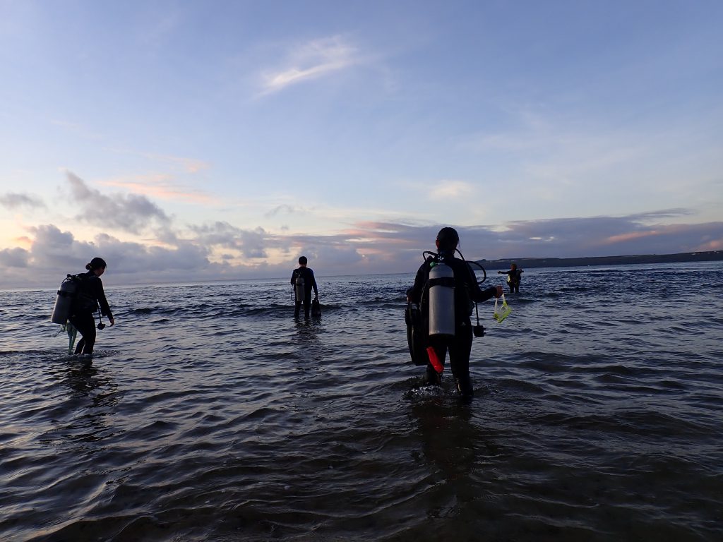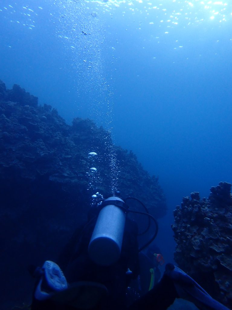 急に深くなるところのちょっと手前で、フィンを履き、飛び込む感じで深いところ目掛けてエントリーします!