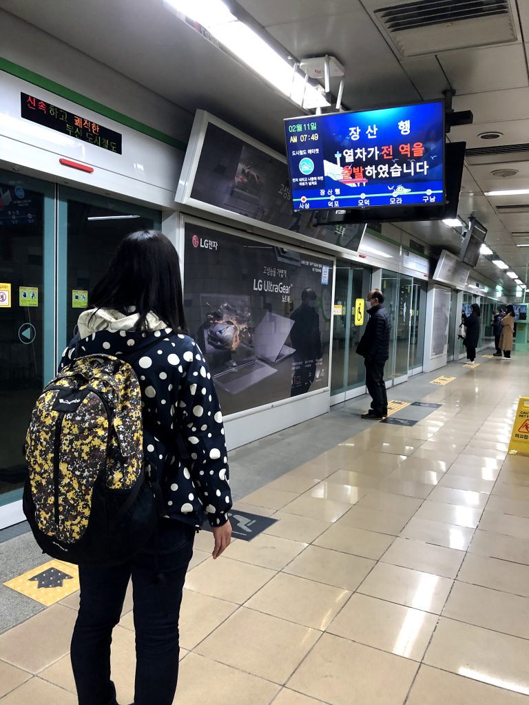 行きは沙上駅近くのお店でナムチポックン(タコ炒め鍋)を食べましたが、今日は沙上駅で地下鉄に乗り換えて、さらに釜山の繁華街の西面(ソミョン)駅まで行きます。