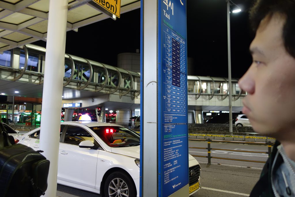 空港近くのホテルを予約しているので、まず、タクシー乗り場へいきました。