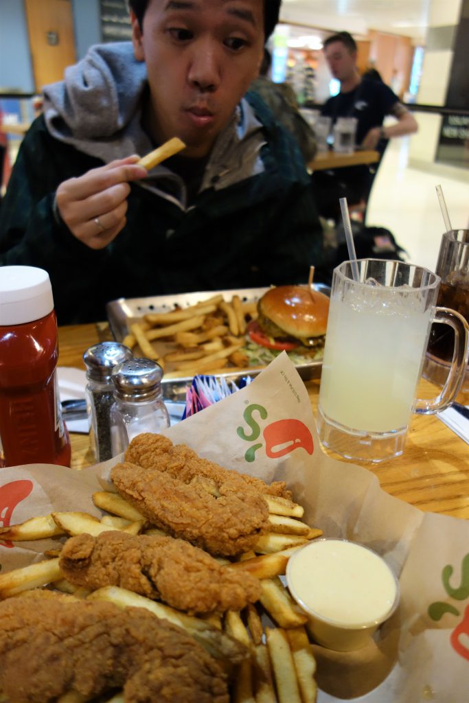 ハンバーガーとフライドチキンとジュースで、40ドルくらいでした。