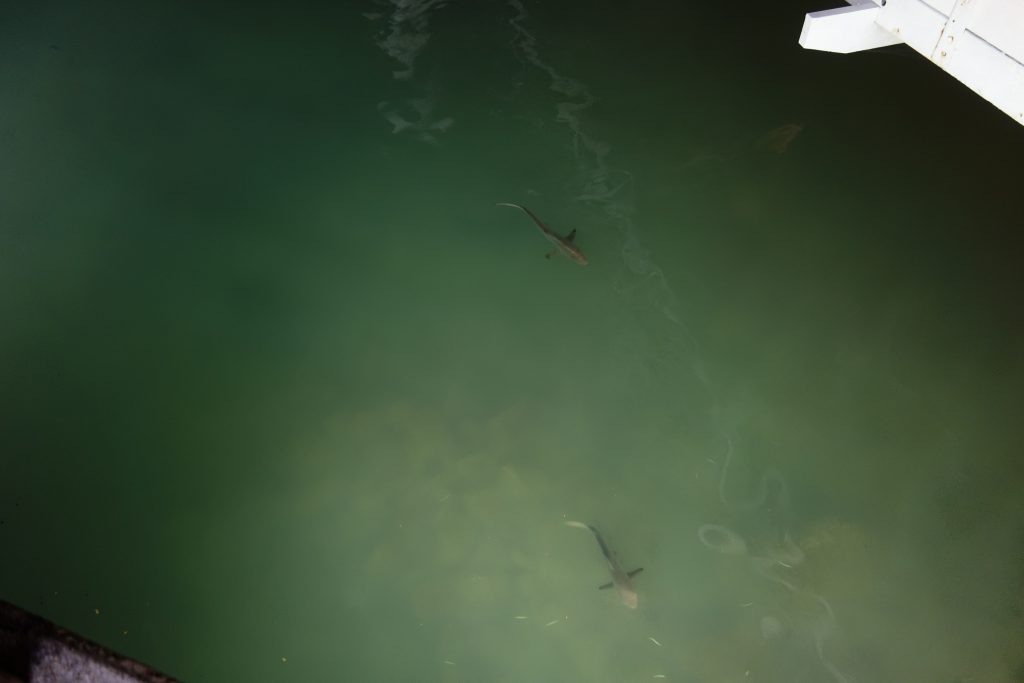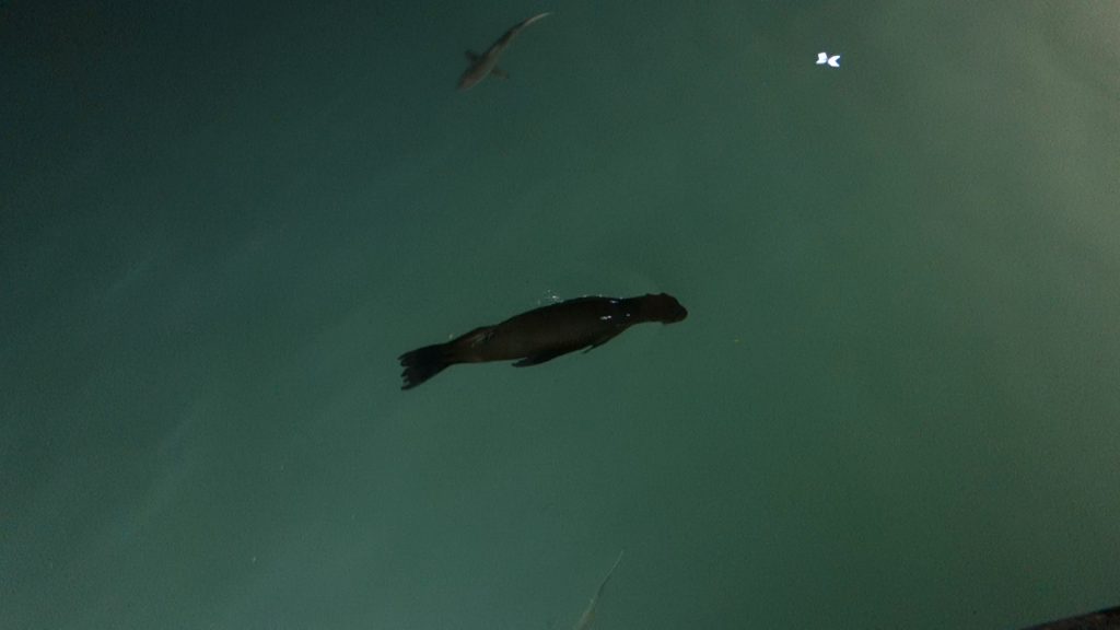 サメに混ざって、アシカも泳いでいます!