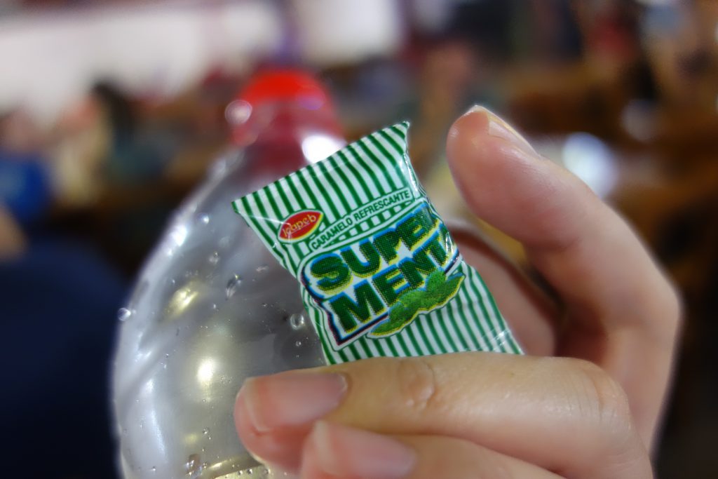 表面が一度溶けて固まったみたいな感じで、クオリティは低いキャンディですが、ミント味でスッキリします。