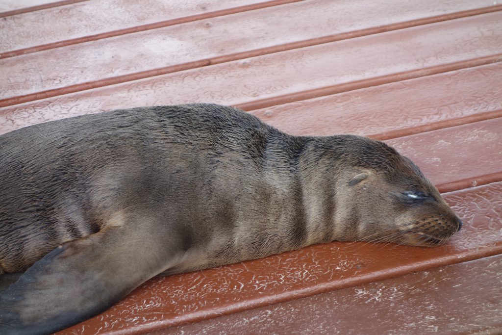そんなアシカたちを踏まないように気をつけながらボートに乗り込むのでした。