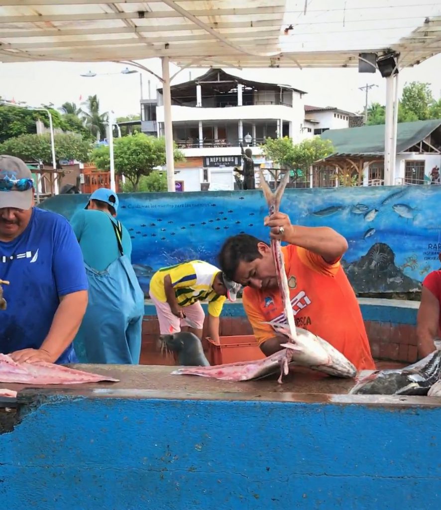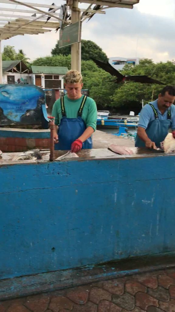 グンカンドリもたくさんいて、魚を捌く人のスレスレを飛びます。
