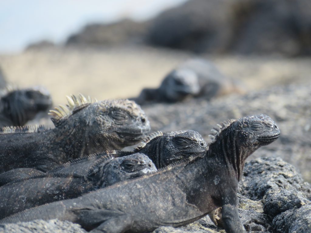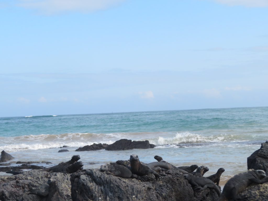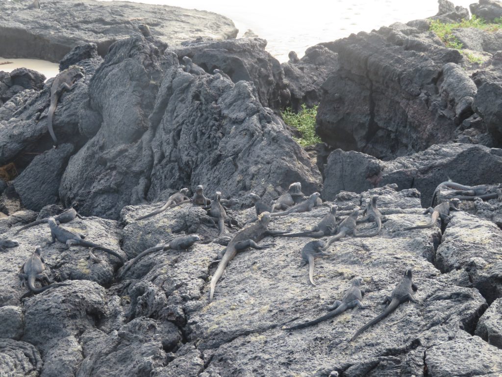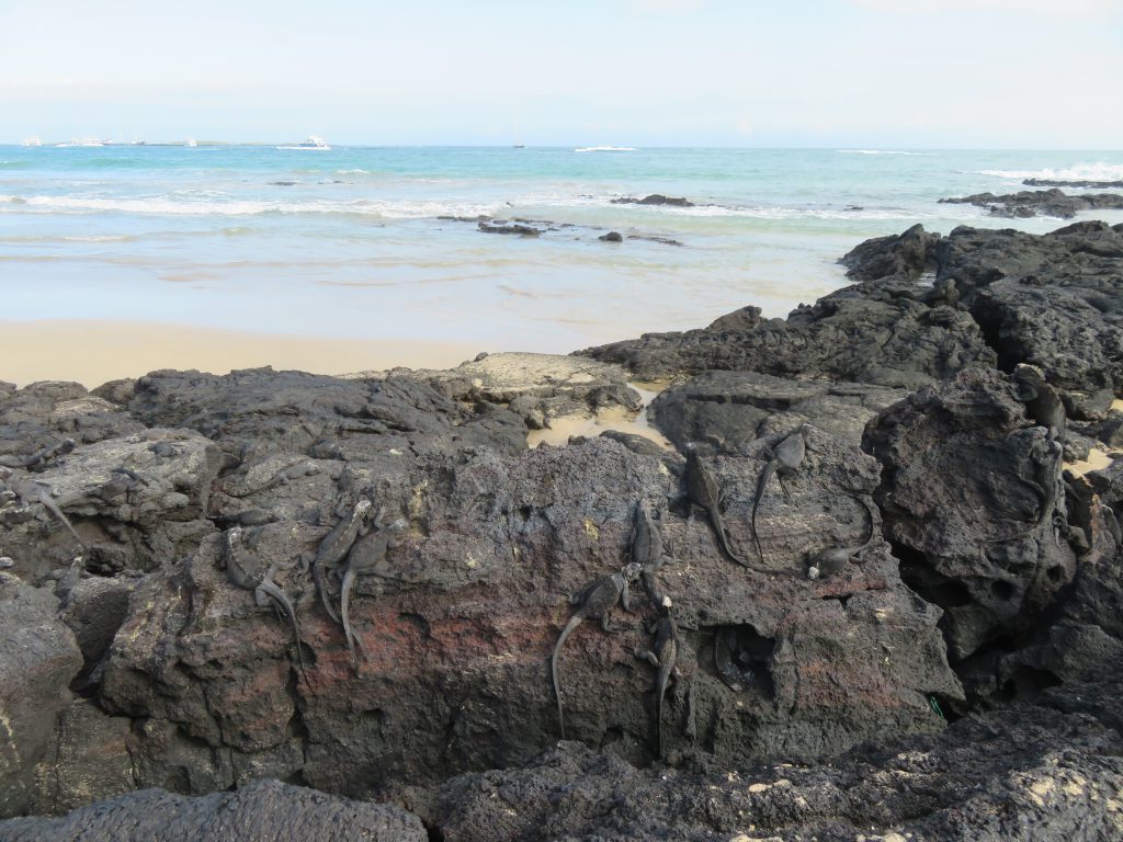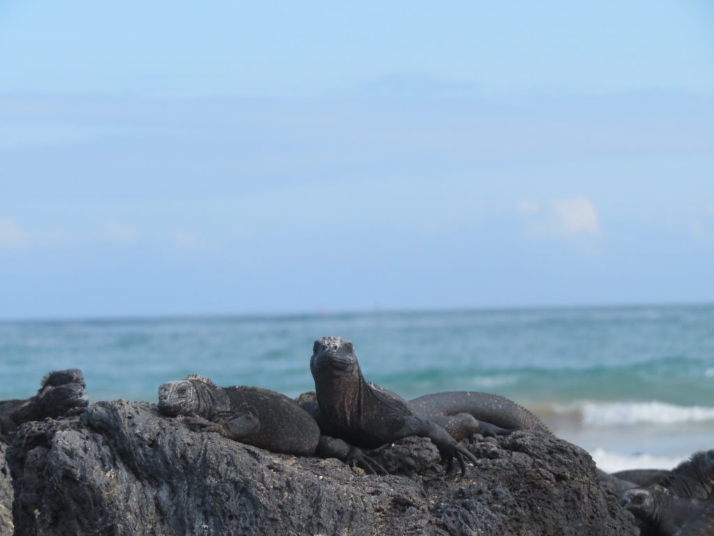海から上がってきたイグアナ達は岩の上で日向ぼっこをします。