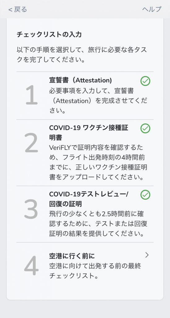 ↓ VERIFLYのアプリのチェックリストの画面はこんな感じです。