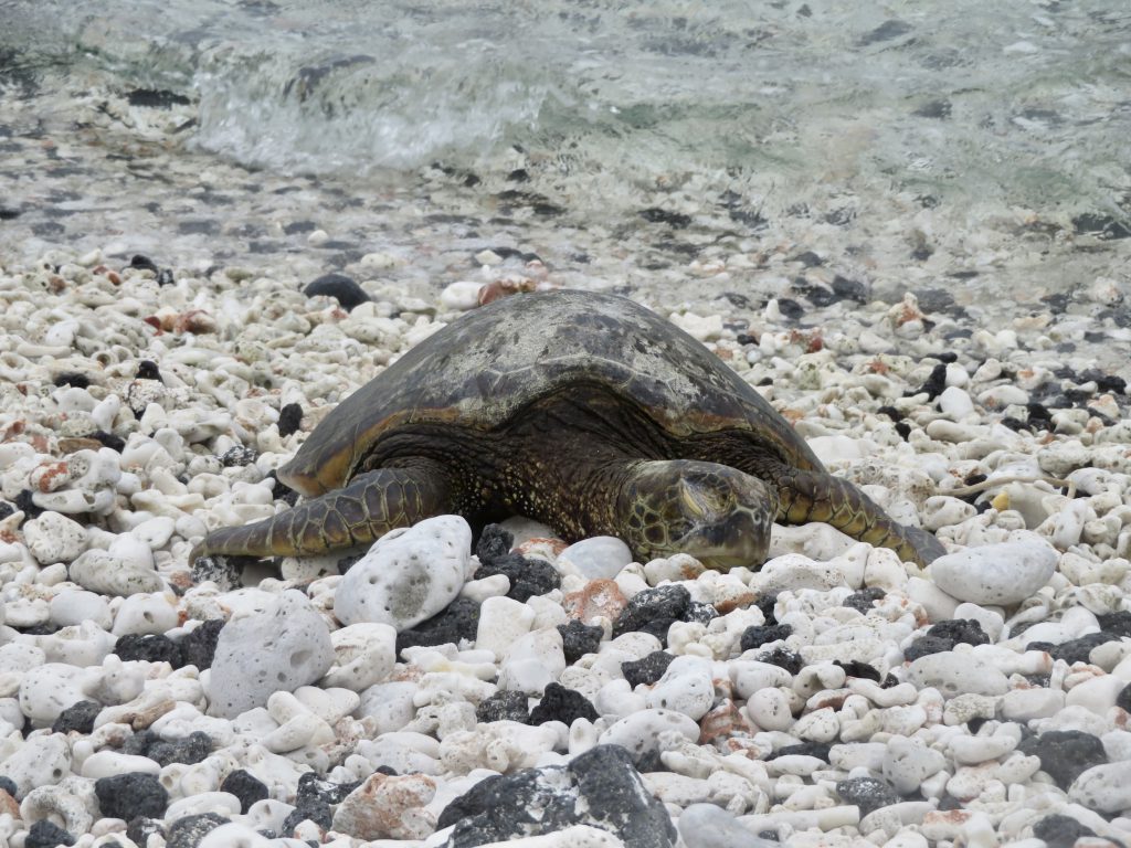 岩みたいでかなり分かりにくいのですが、ウミガメです!