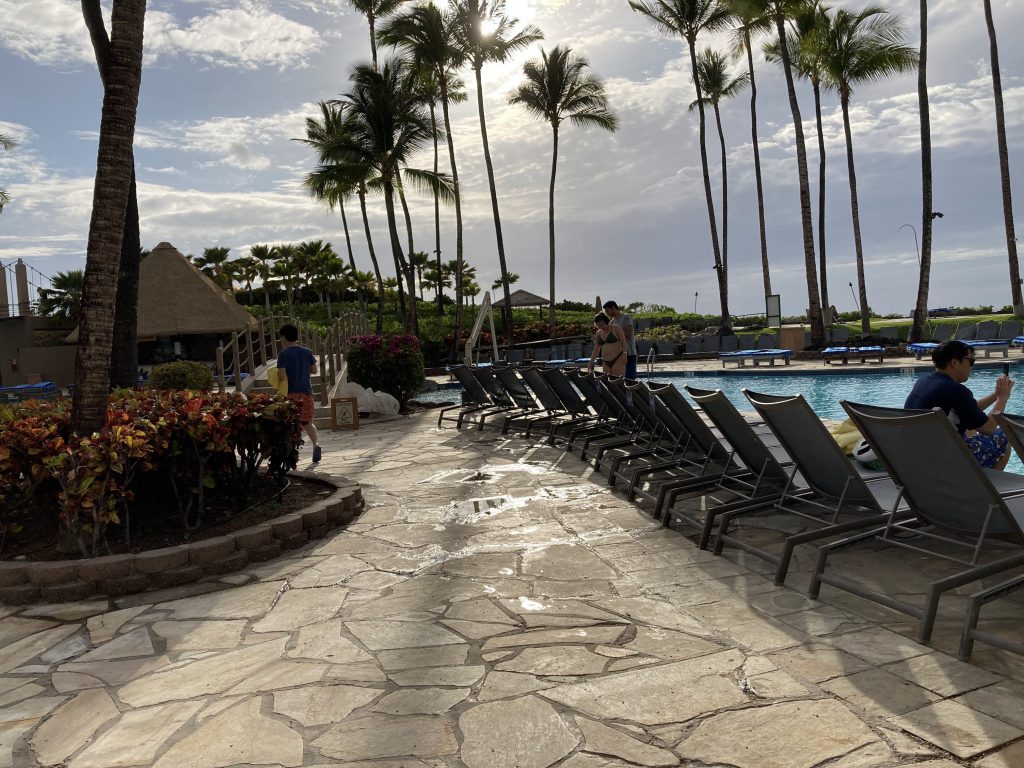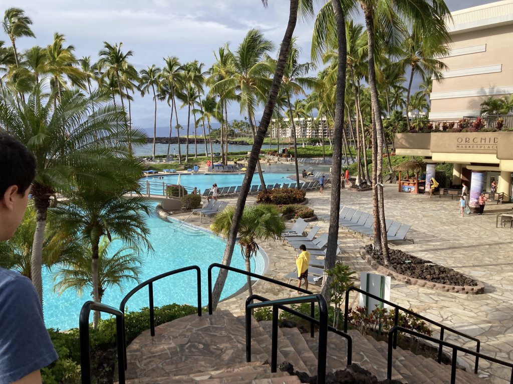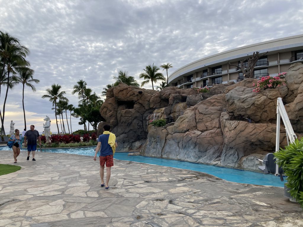 オーシャンタワーの方にもプールはあるのですが、大きなプールが左の遠くにあるので、そっちから行きます。