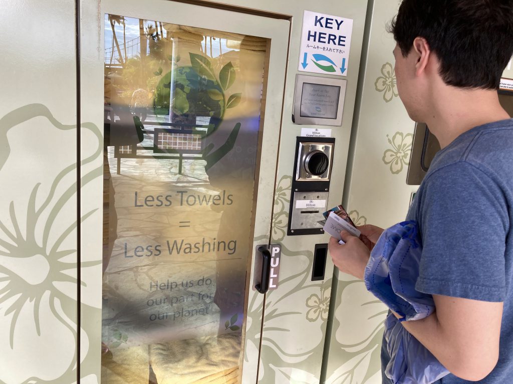 この機械にルームキーを入れると扉が開いて中のタオルを取り出せます。
