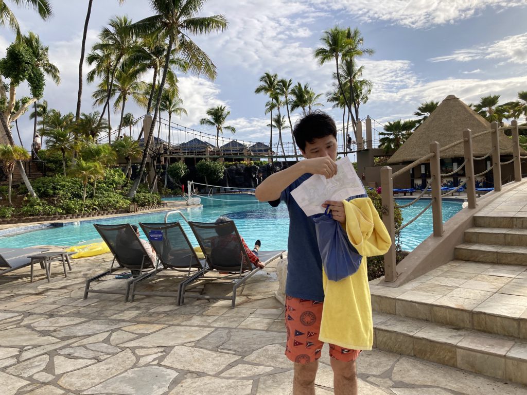 オーシャンタワー側のプールにも行ってみようとモリは地図を確認中です。