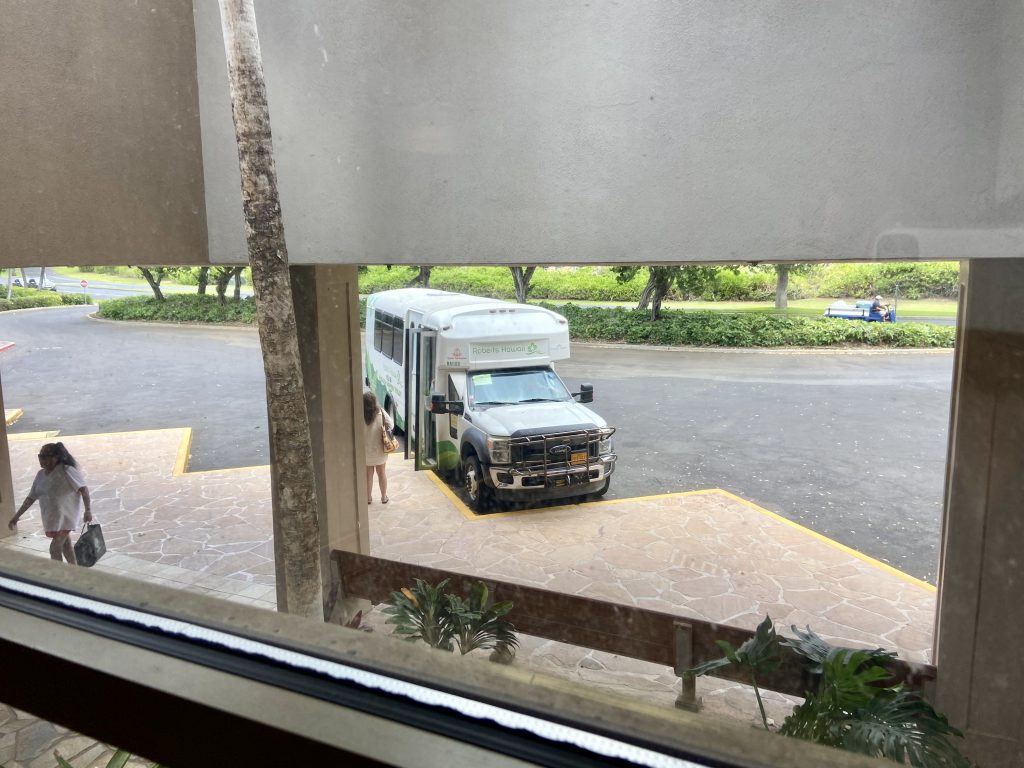 ちなみに、ヒルトンのバス停はメインロビーの真下の階にありますよ。