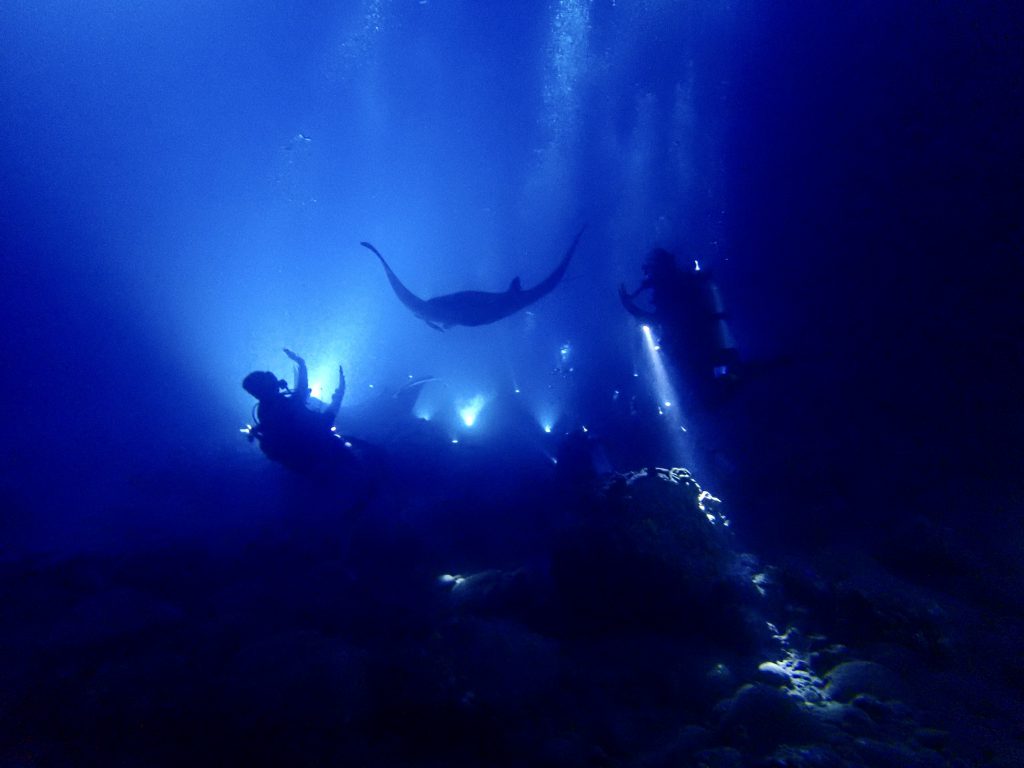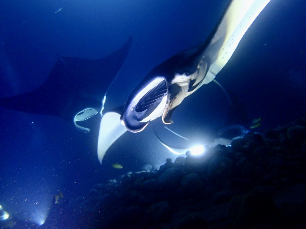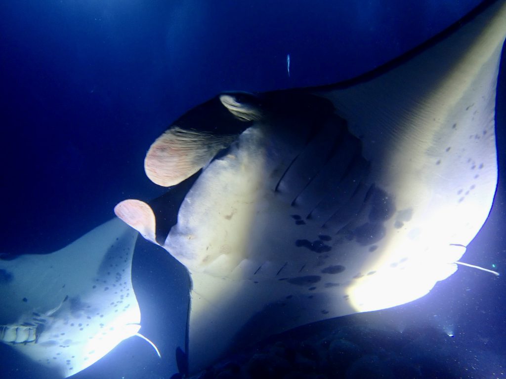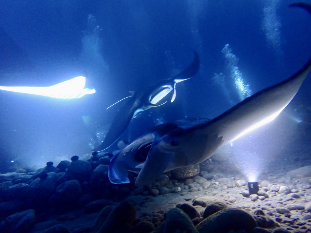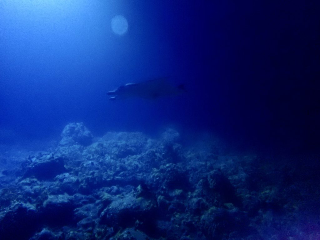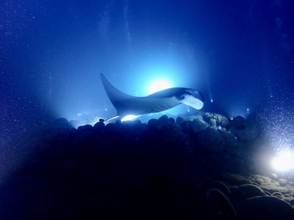 私たちの近くにあるライトめがけてマンタがやってきます!