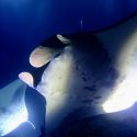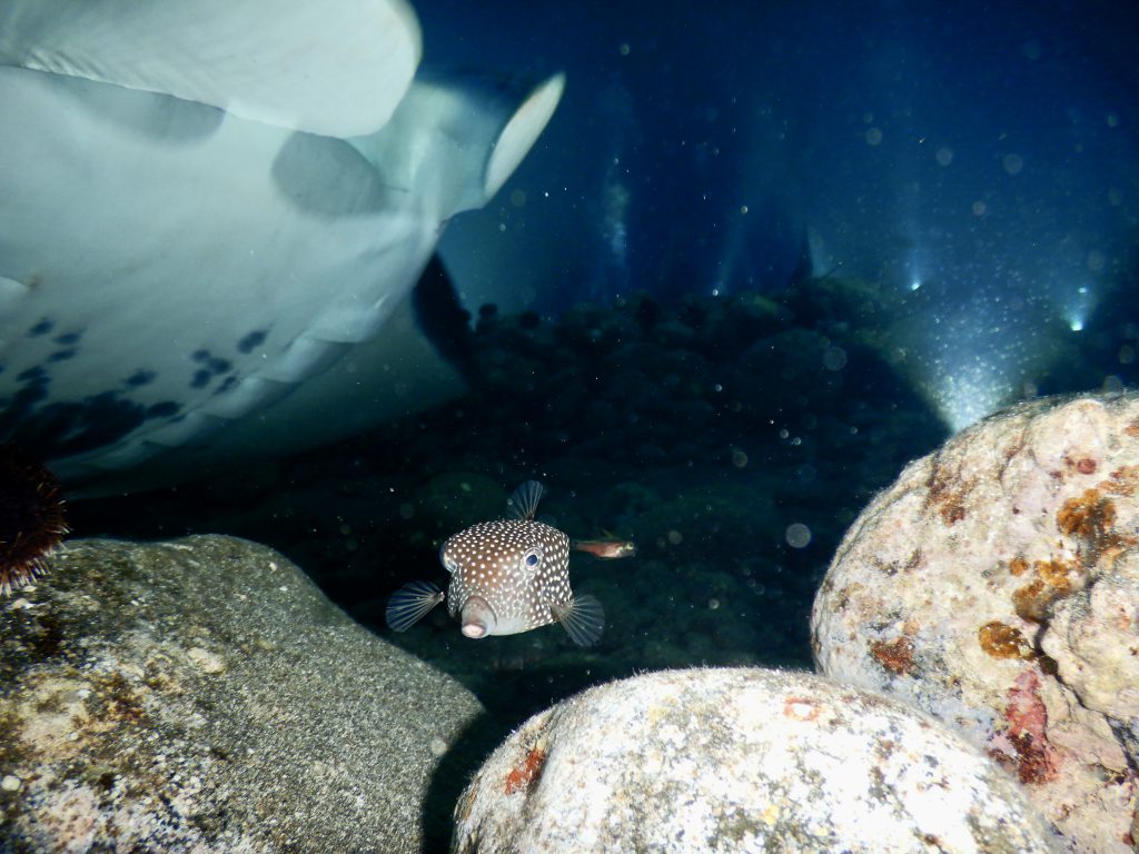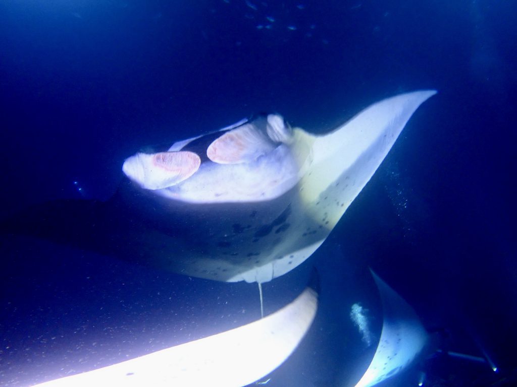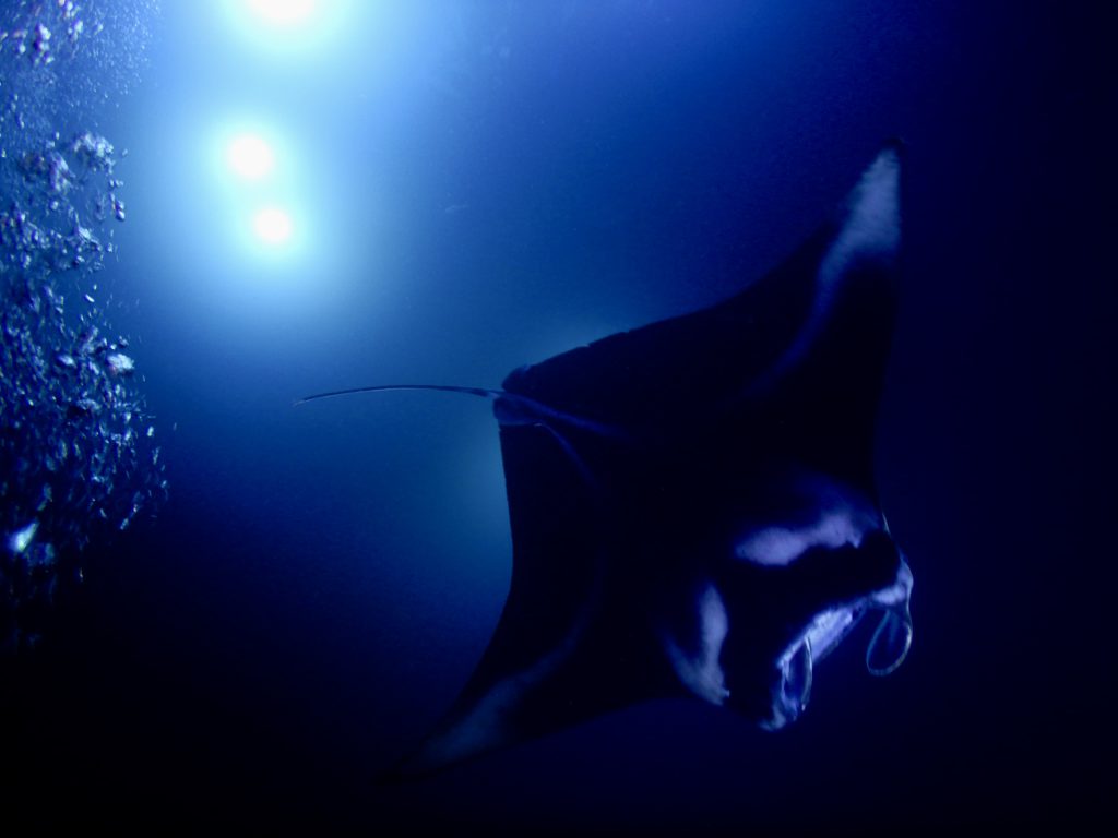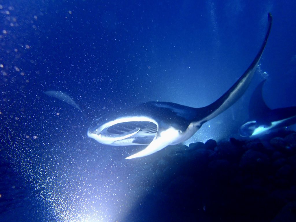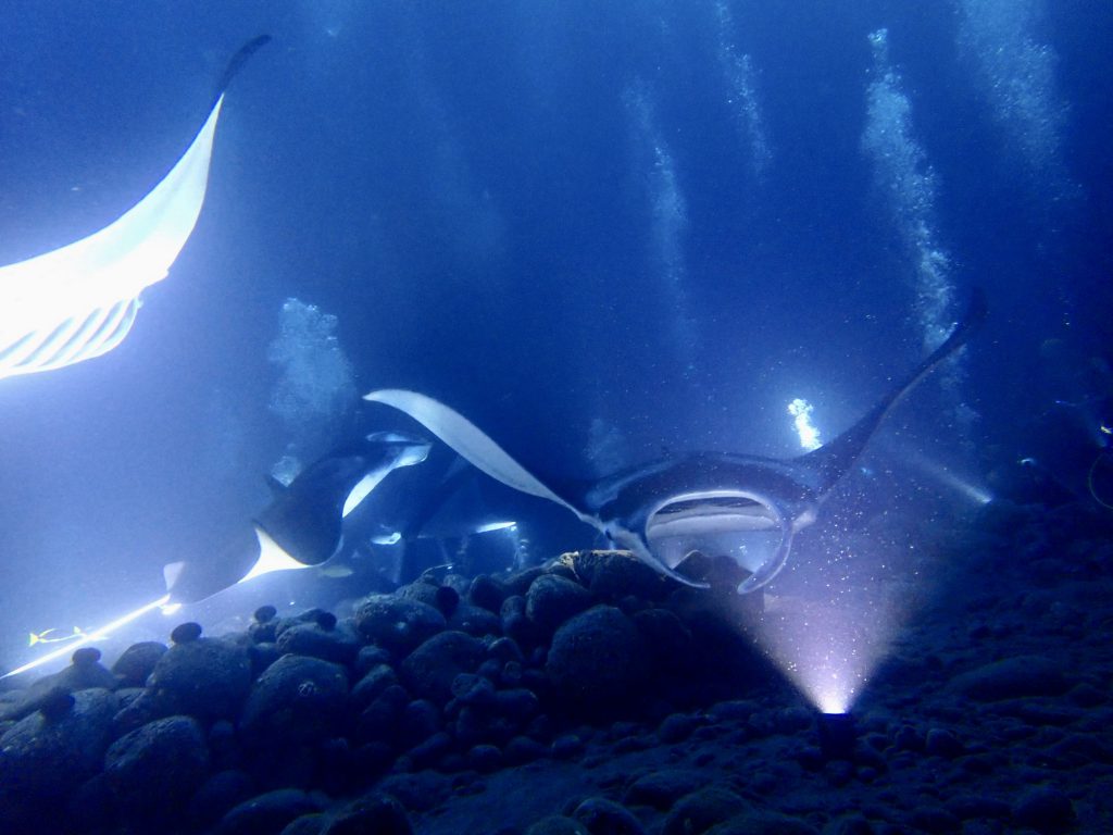 私たちの近くにあるライトめがけてマンタがやってきます!
