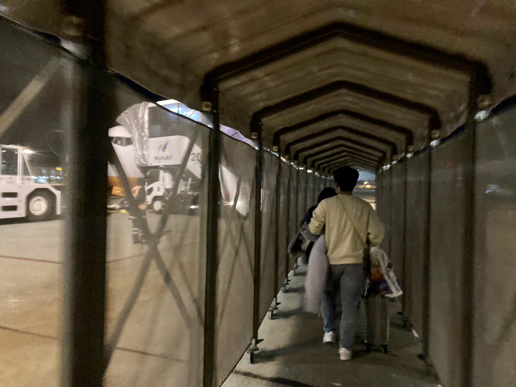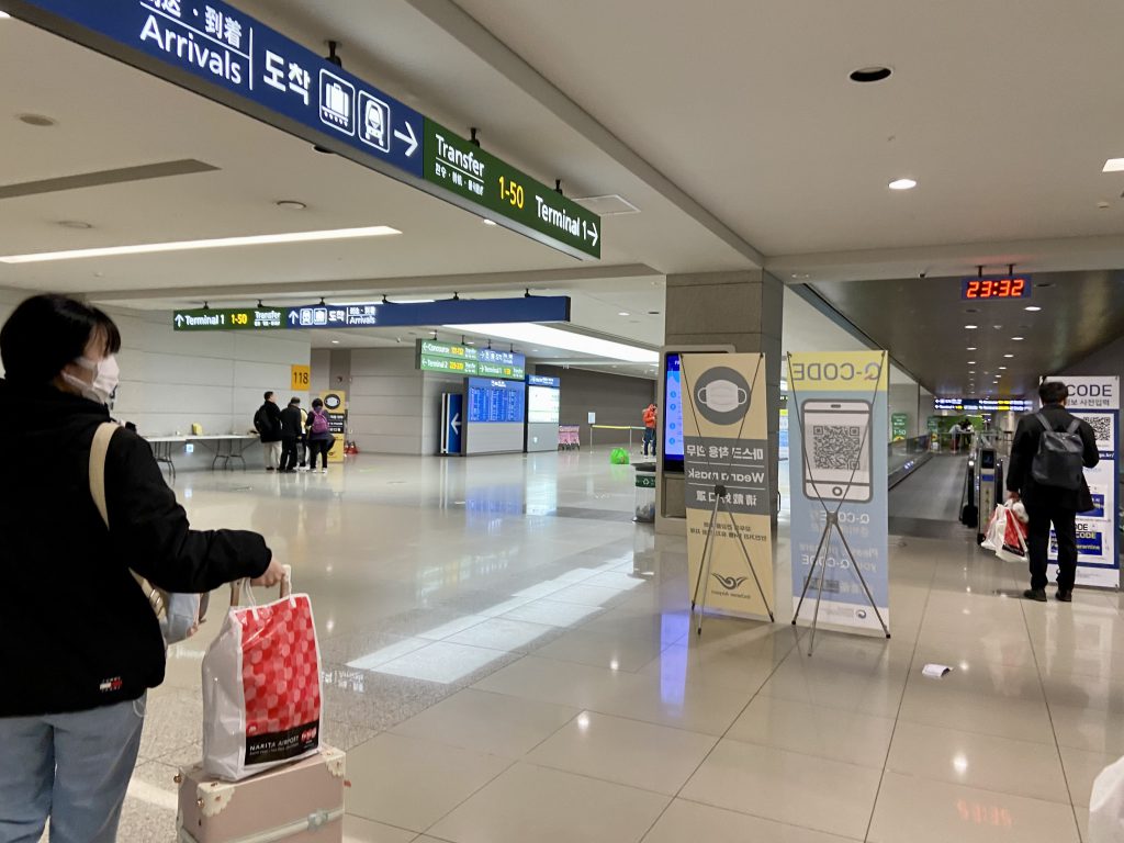 飛行機から降りて、しばらく歩くと、Q-CODEのチェックがありました。