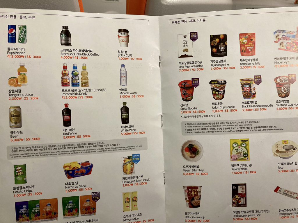 LCCなので、食べ物、飲み物は有料です。
