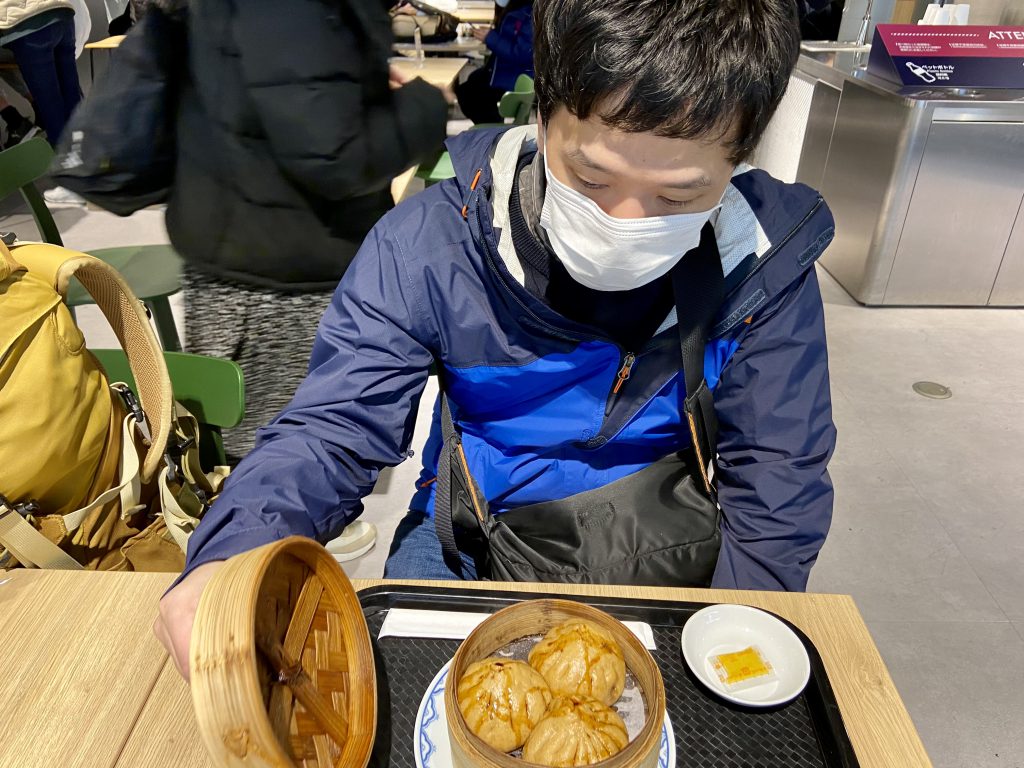 でも機内食も出ないし、この後絶対お腹が空くと思うので、豚まんだけ食べました。
