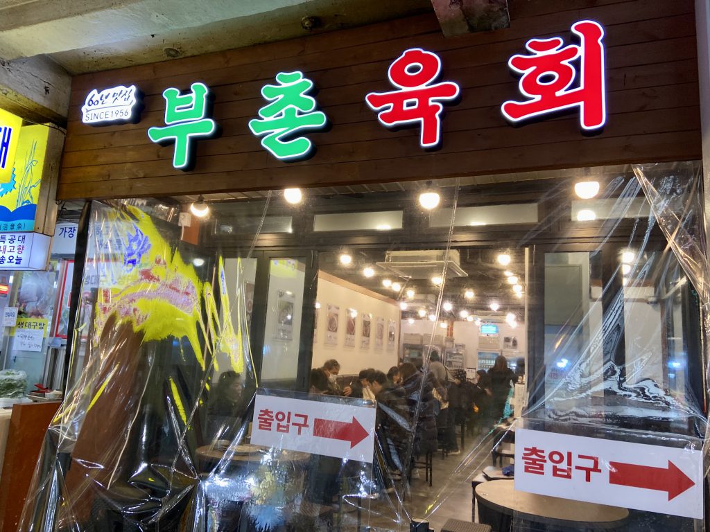 ここはユッケ通りと呼ばれていて、「プチョンユッケ」の他にもたくさんユッケ屋さんが並んでいます。