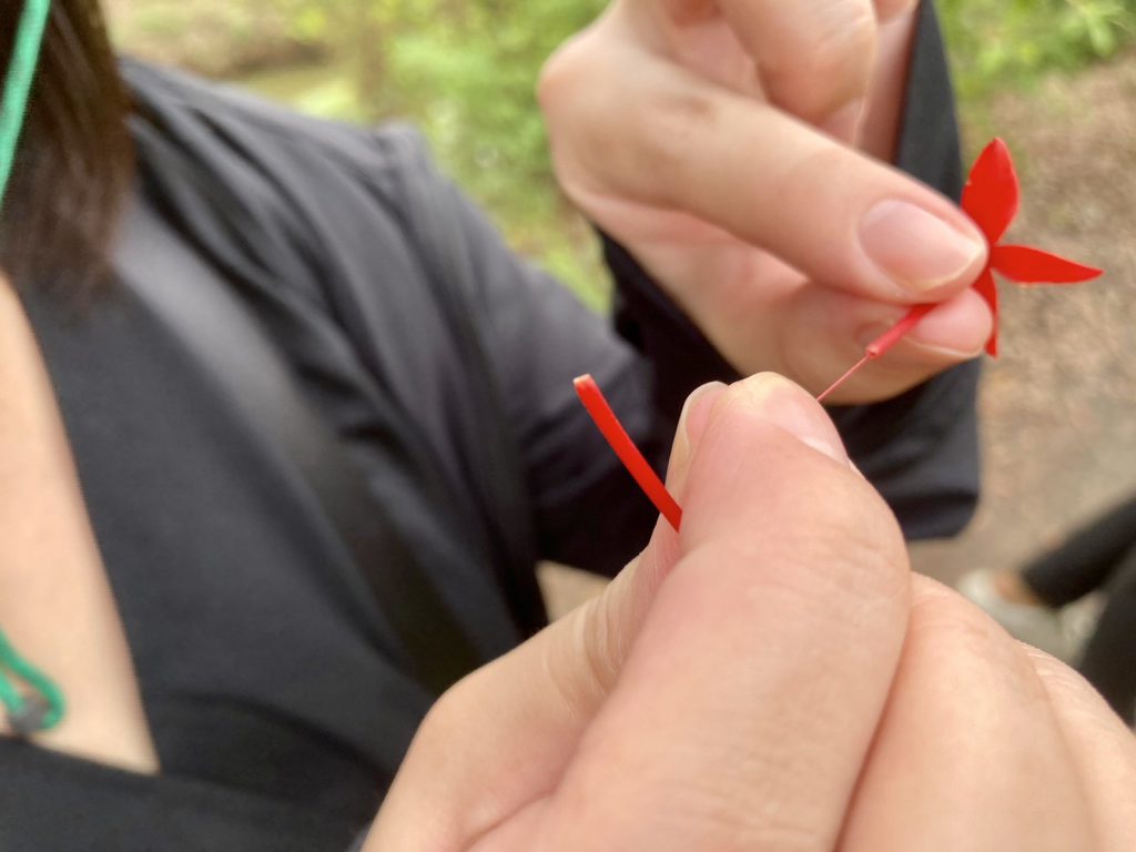 ガイドさんがなにやら赤い花をくれました。