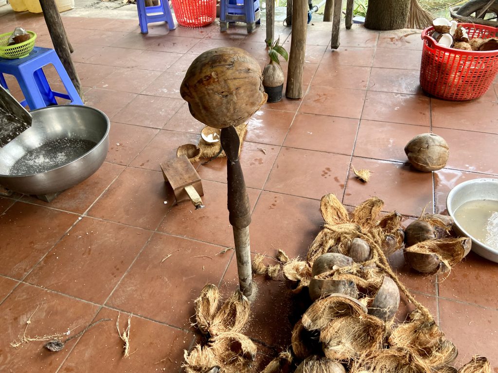 カラカラのココナッツを剥いて、繊維を取り出してロープなどに使うそうです。