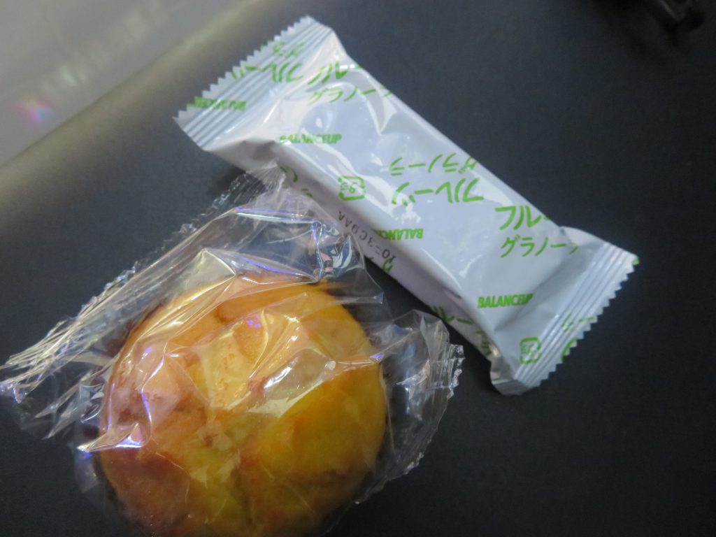 私が横になって目を瞑っている間にCAさんがおやつのマフィンを置いていってくれました。