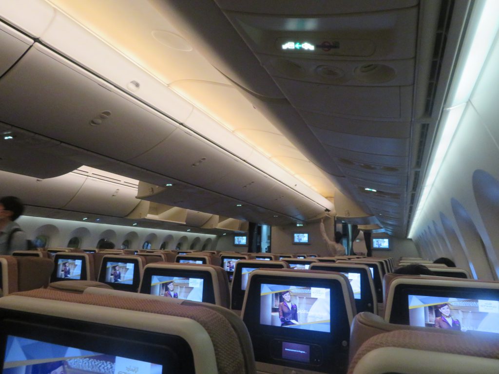 日本人のCAさんが1人だけ搭乗しているので、機内アナウンスは日本語もあります。