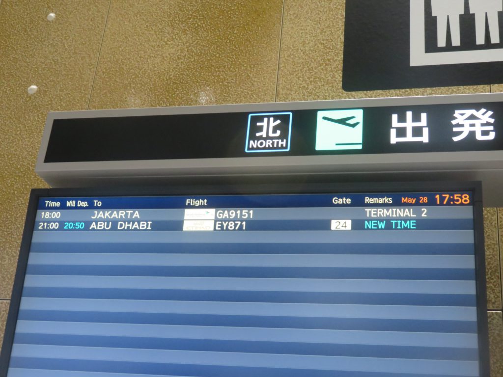 そして、私の乗るアブダビ行きは時間が少し変更になっていますね。