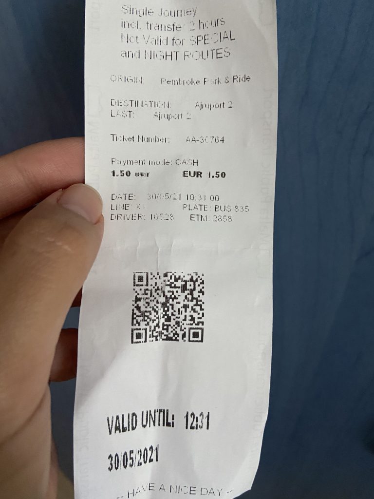 マルタのバスは2時間乗り放題で、冬は1.5€、夏は2€です。