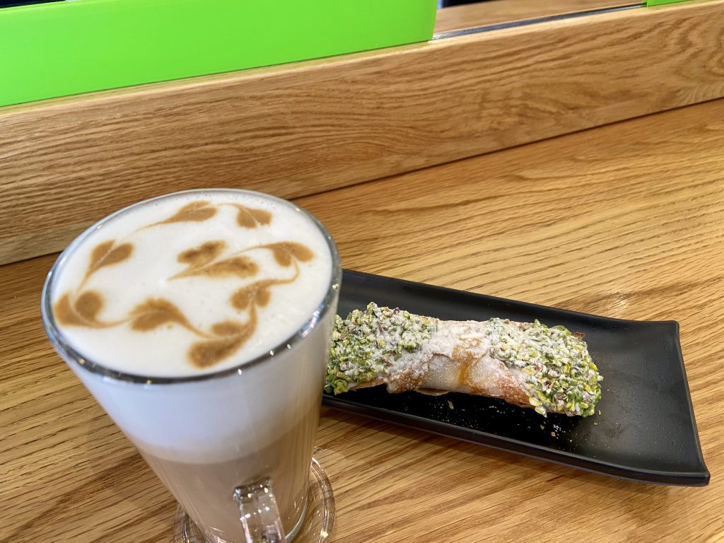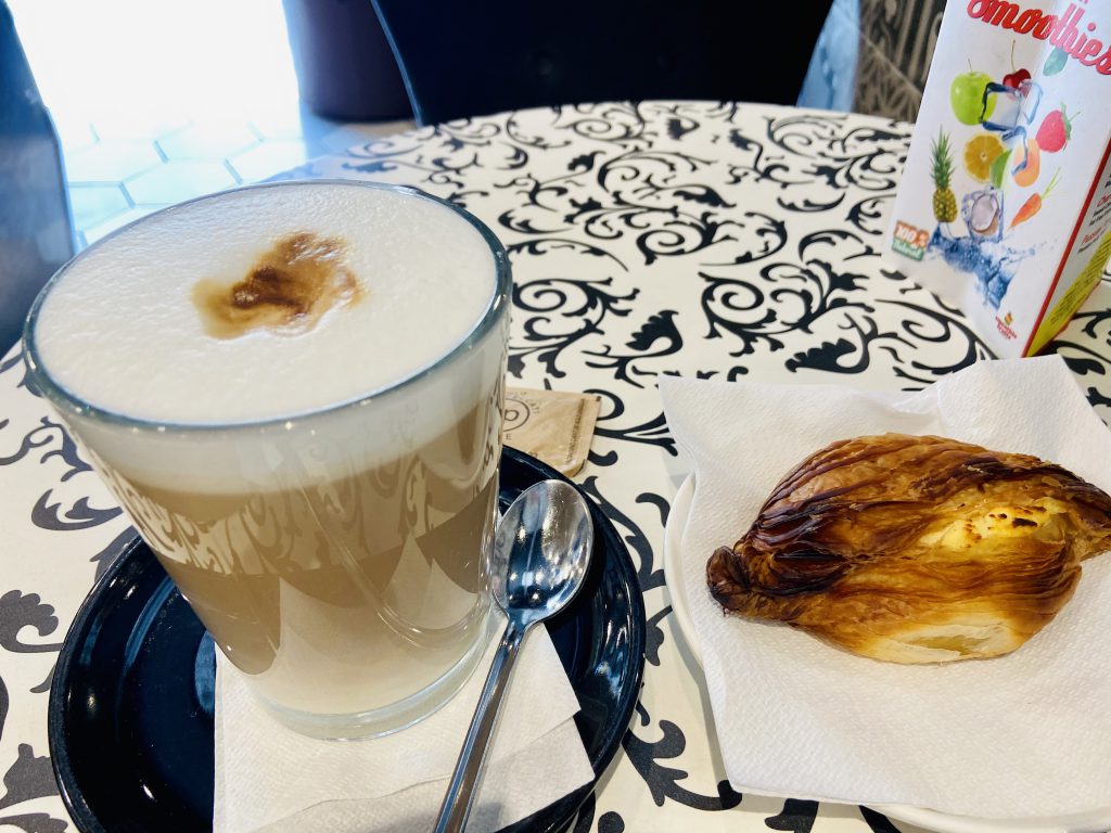ラテマキアートとリコッタチーズのパスティッチを注文すると、席に座って待つよう言われました。
