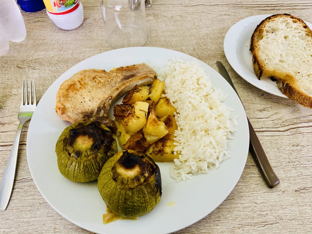 上の写真の左下の料理は、なんとかメロンとマムが呼んでいるなぞの野菜(すみません、正式名称が聞き取れなかったです)の中をくり抜いて、中にトマト味のひき肉をたっぷり詰めてグリルしたものです。