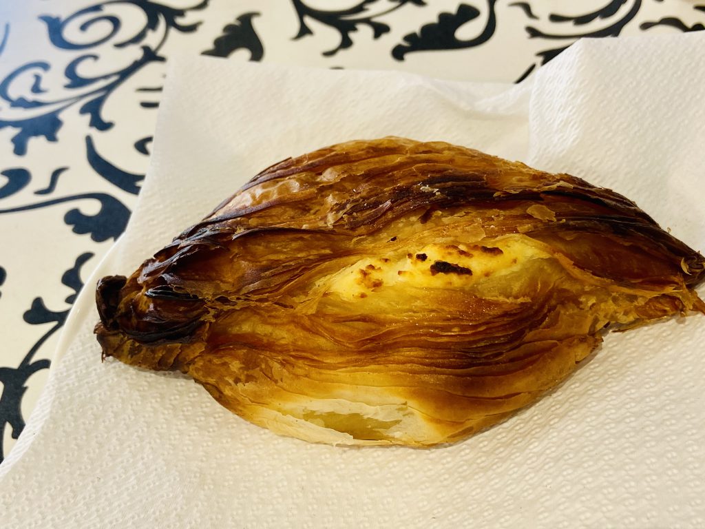 デニッシュパンのような感じで、リコッタチーズをパイ生地で包んで焼いたものです。