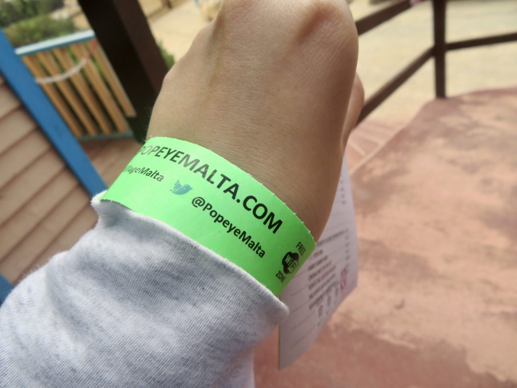 腕に入園チケット代わりの紙のリストバンドをつけます。