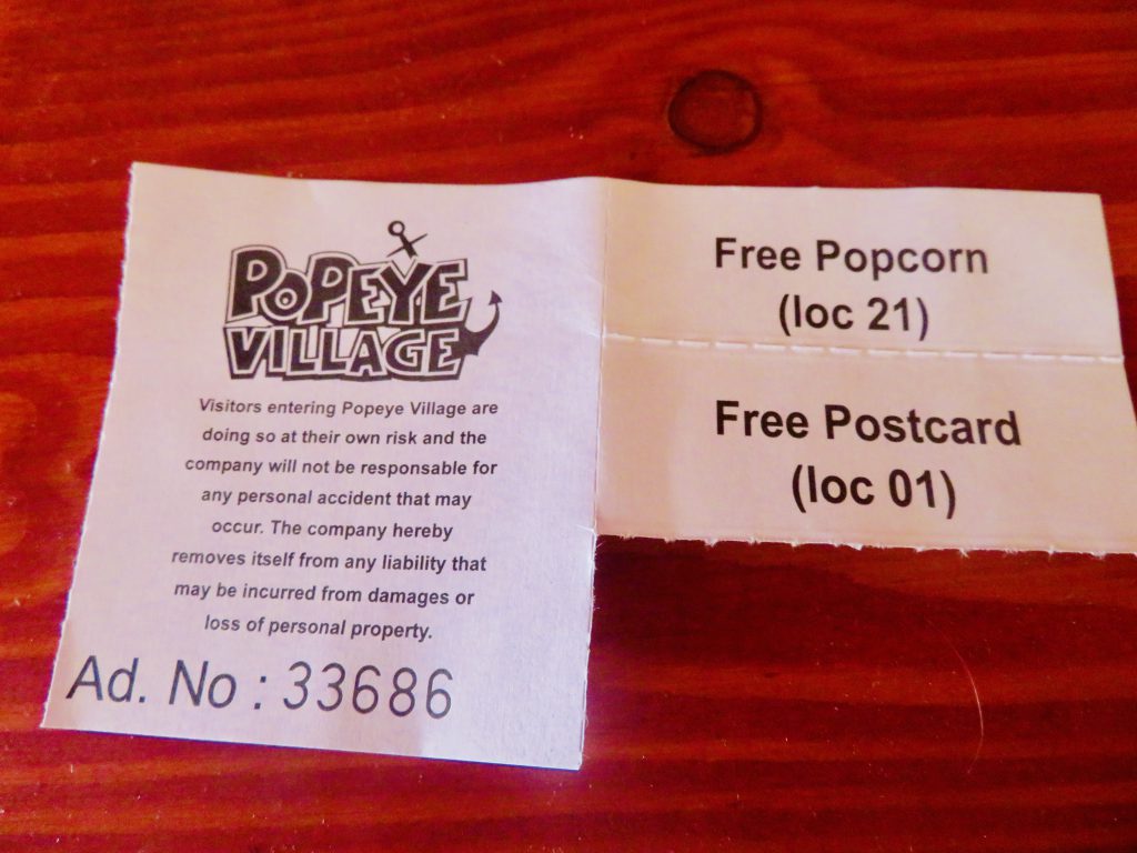 チケット売り場で「大人1人」と言うと、1人なの?という感じの表情をしたスタッフですが、親切にポパイビレッジの説明をしてくれました。