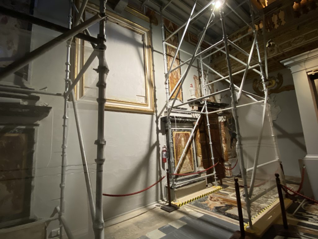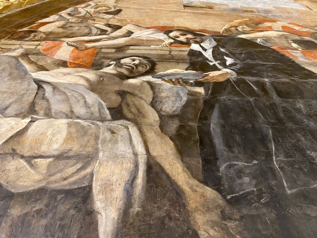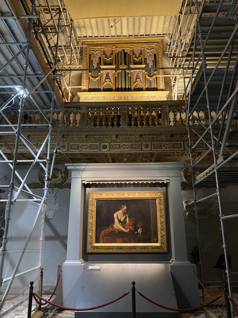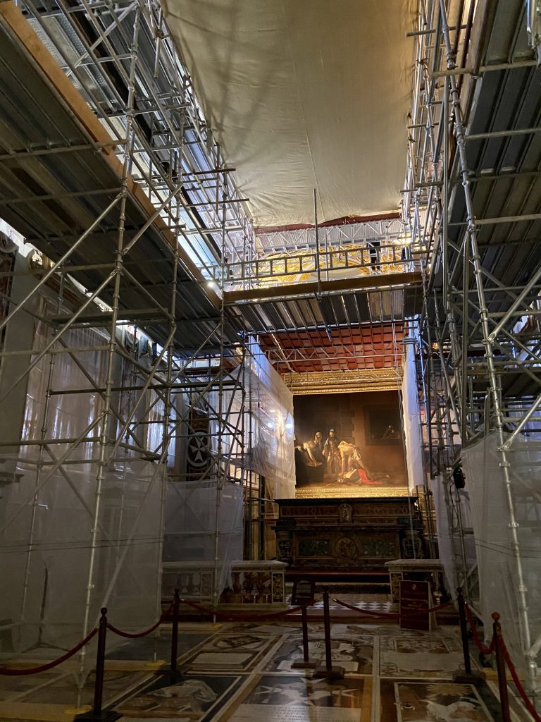 まさに壁画などの修復の作業をしている最中でしたが、カラヴァッジョの絵だけは見ることができて良かったです。