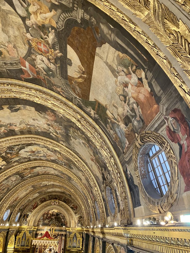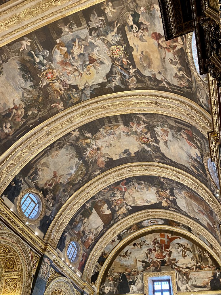 聖ヨハネ騎士団の十字の模様がところどころある天井画です。