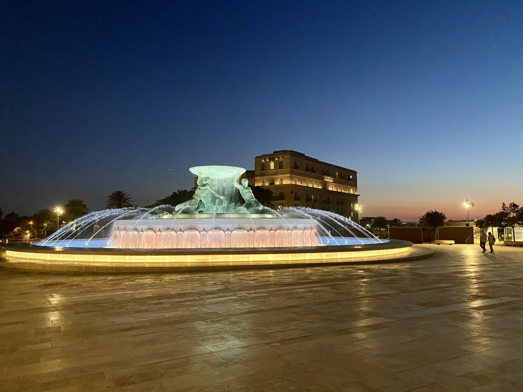 バスに乗るためにバレッタ入り口の噴水までやってきました。